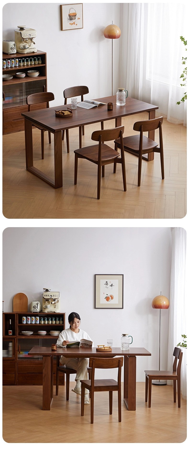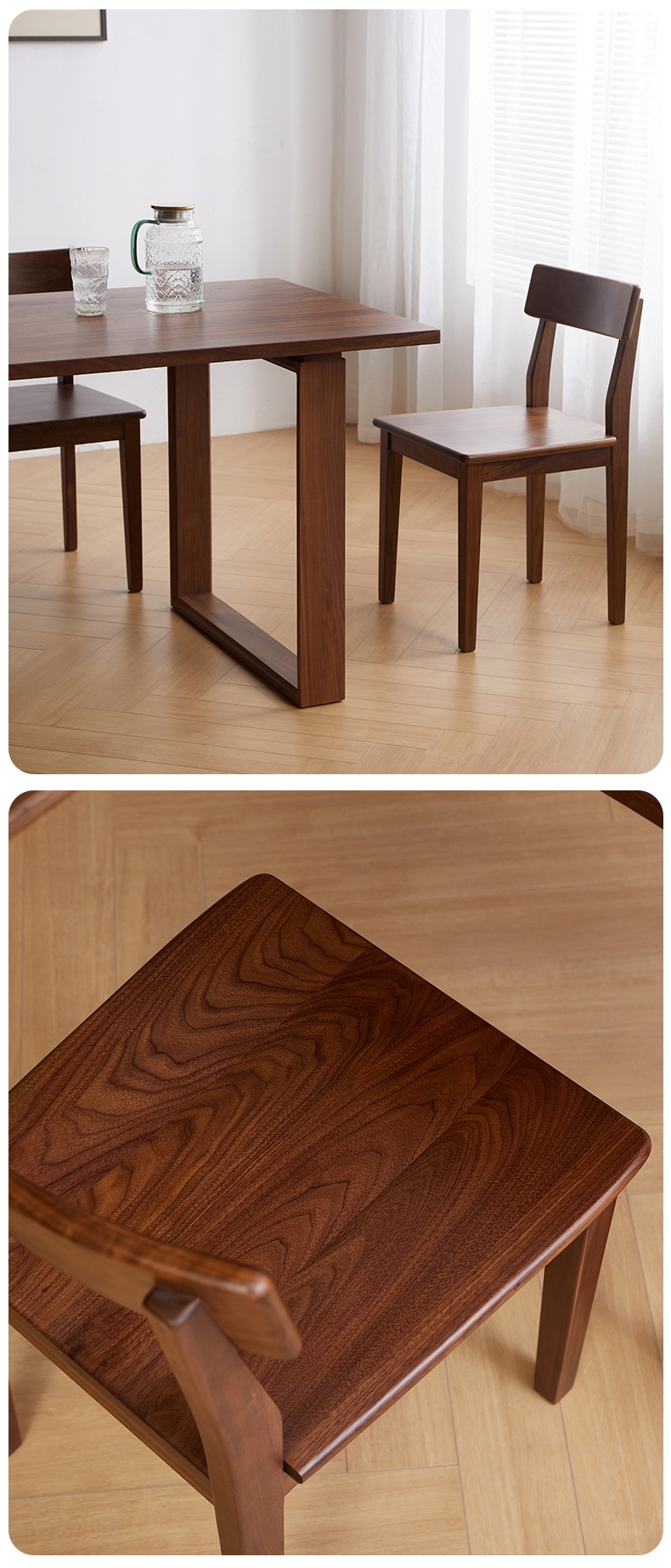 成为第一个“North American black walnut dining table and chair combination full solid wood Nordic rectangular retro simple small apartment dining table” 的评价者
