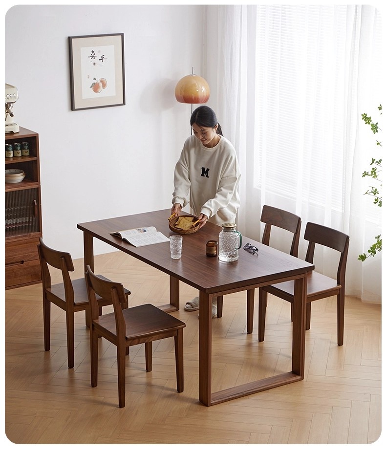 North American black walnut dining table and chair combination full solid wood Nordic rectangular retro simple small apartment dining table