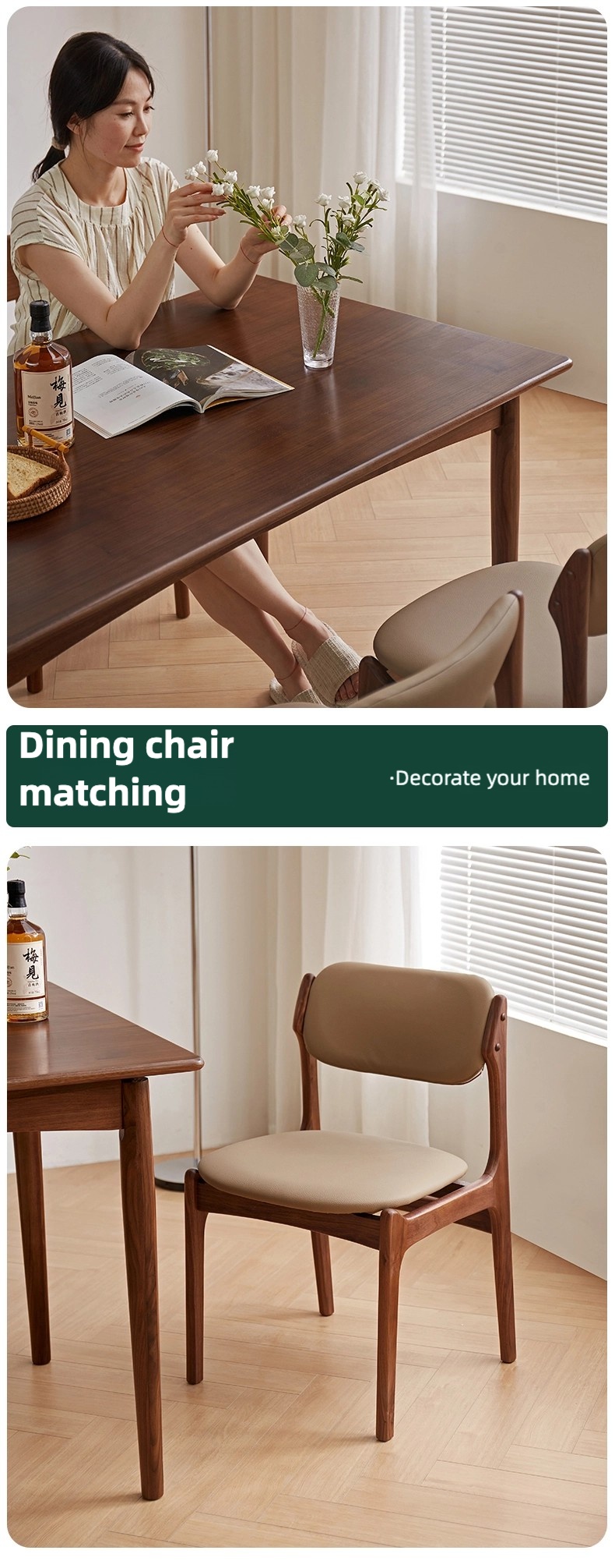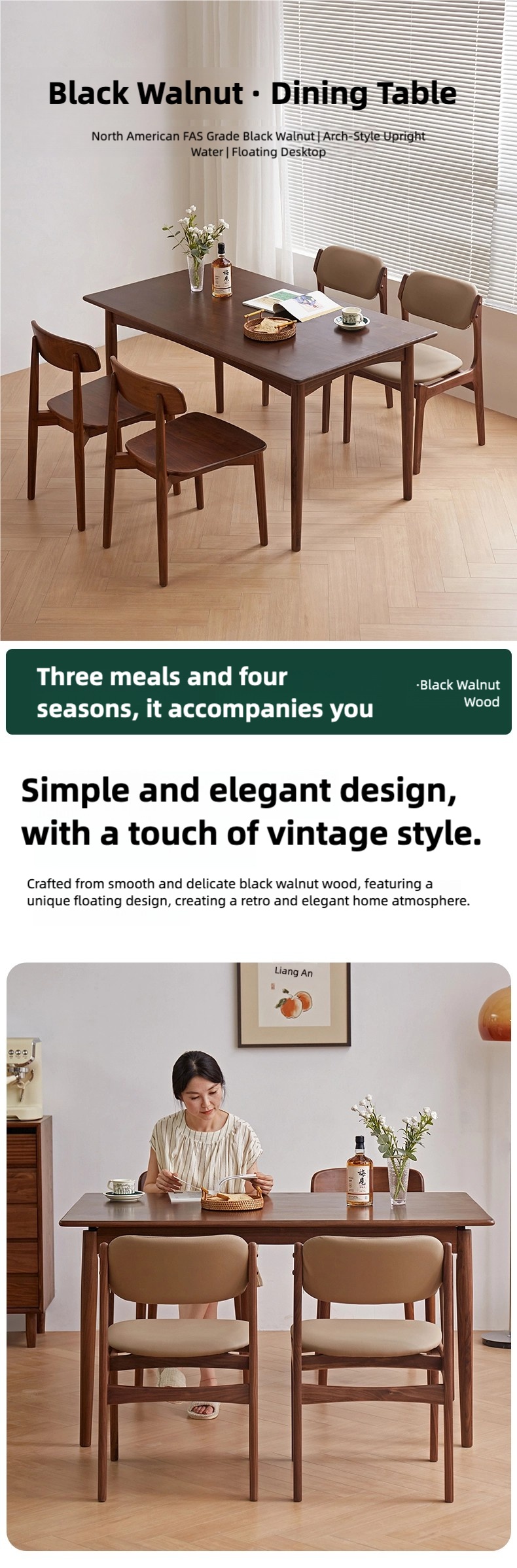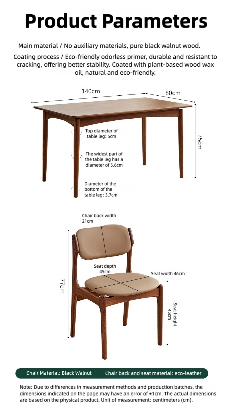 成为第一个“North American black walnut full solid wood dining table for household rectangular retro light luxury simple small apartment dining table and chair combination” 的评价者