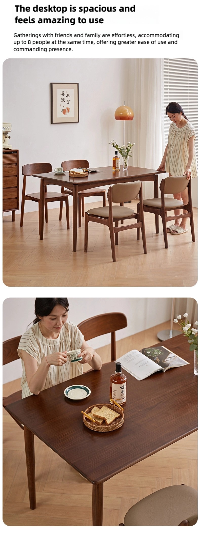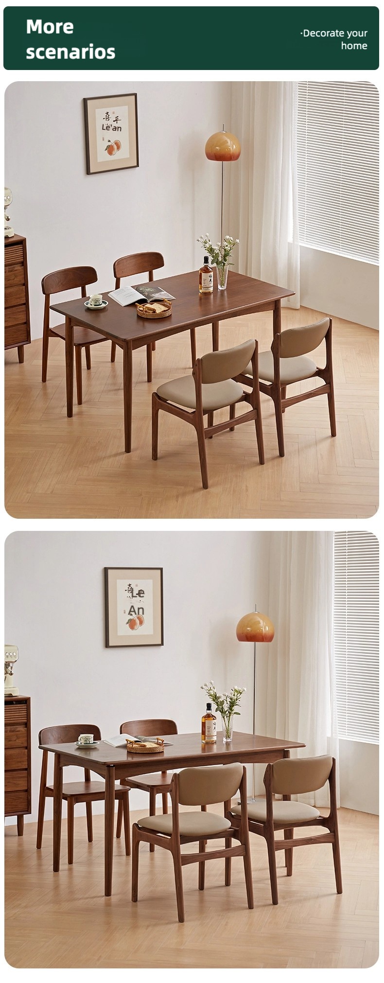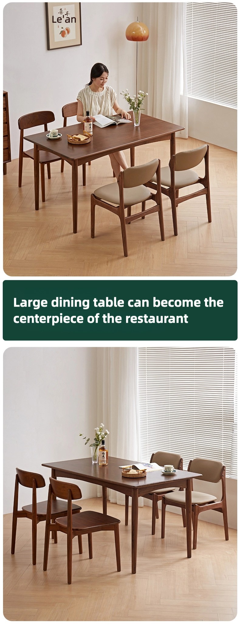 成为第一个“North American black walnut full solid wood dining table for household rectangular retro light luxury simple small apartment dining table and chair combination” 的评价者